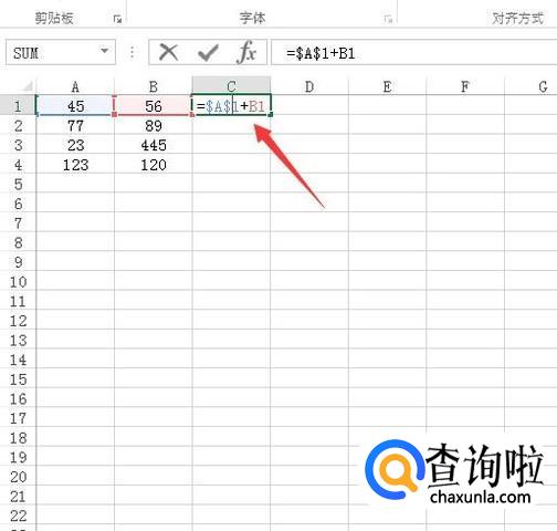 再在单元格内我们将A1的前面全部加上绝对引用符号,如图所示: