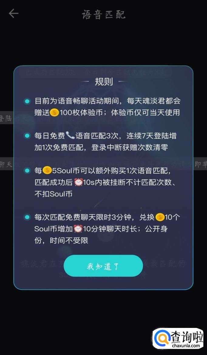 了解规则之后点击“我知道了”,开始匹配