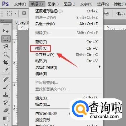 选择图层内容之后再在编辑菜单里找到拷贝选项,然后再点击粘贴选项,这样我们也能够复制图层,如图所示: