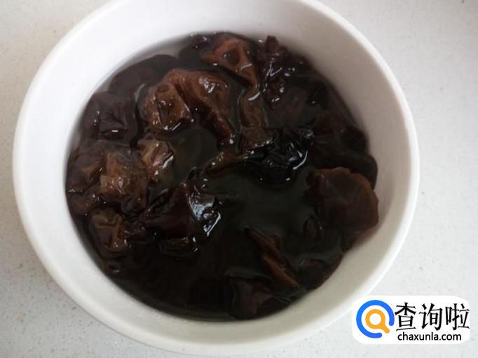 用温水快速泡发木耳,把泡发好的木耳收拾清洗干净,攥干水分(避免炸锅),备用。