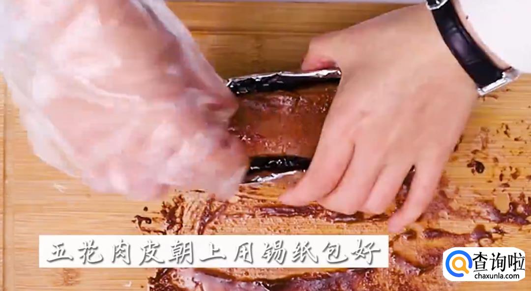 放入220度的微波炉,20分钟后取出,脆皮五花肉就做好了。