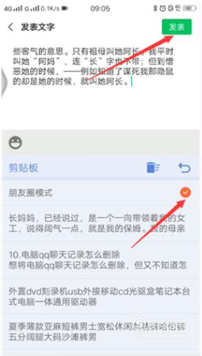 勾选朋友圈模式,点击发表即可。