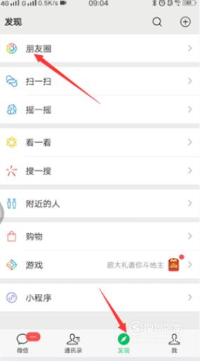 打开手机微信,点击发现,点击朋友圈