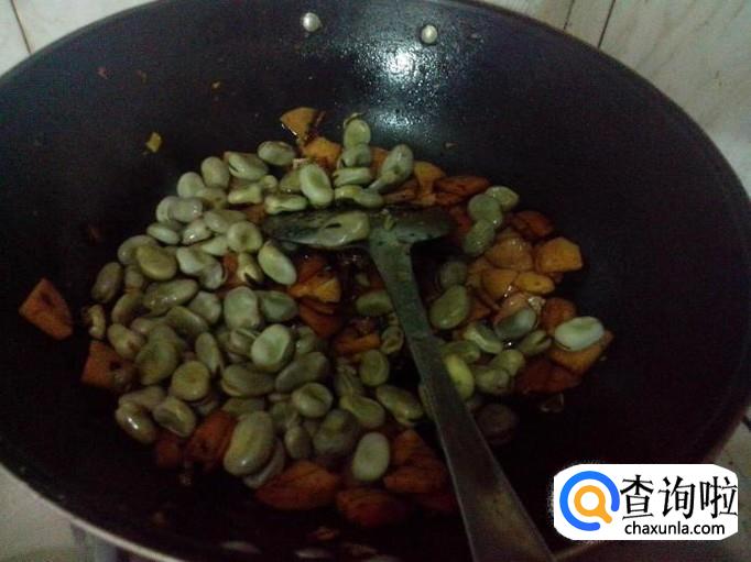 然后,捞出胡豆置于锅中,不停进行翻炒。
