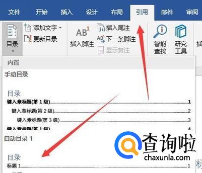 接着点击引用,然后选择目录,这时候就可以在word中插入目录了,直接选择插入目录,就能自动生成目录了。