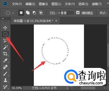 首先,打开PS CC2018,新建空白文档,点击左侧的圆形选择工具,按住Alt+Shift,绘制出一个正圆。