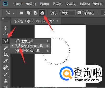 接下来点击多边形套索工具,再点击属性栏上的与选区交叉按钮。