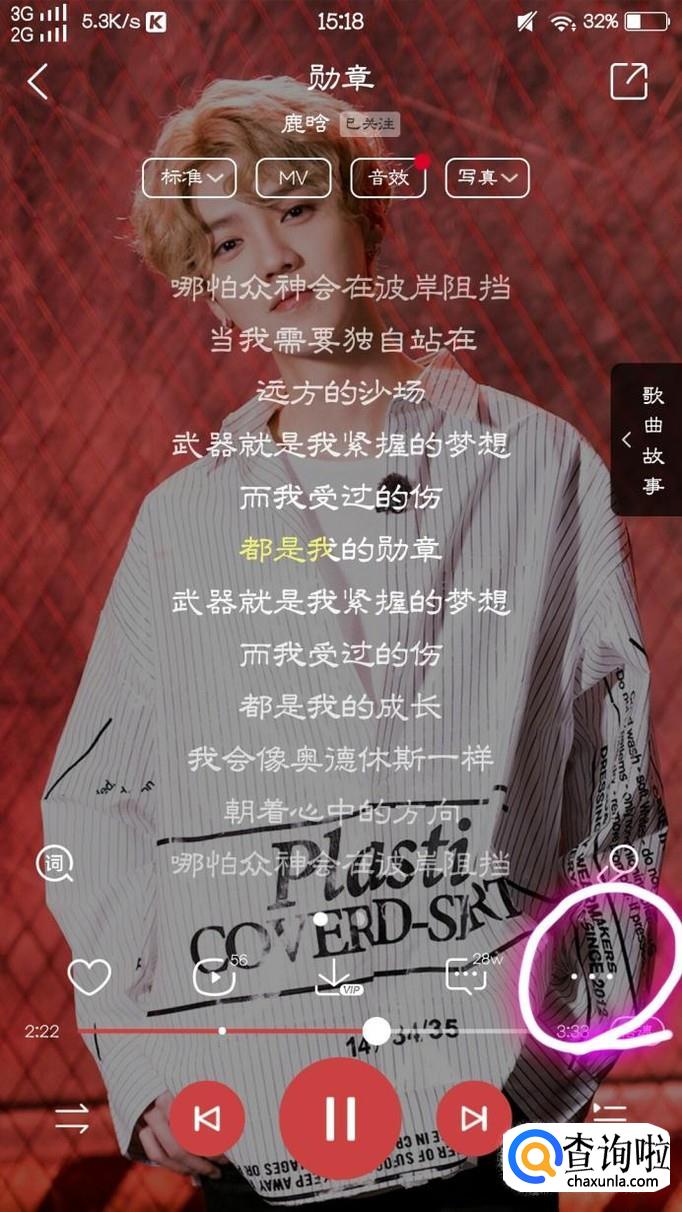 紧接着,收听他的歌时,点击右下角的“…”符号
