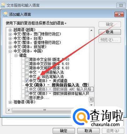 勾选上美国键盘,然后选择确认,这就可以了,而且这里还有很多其他的方式;