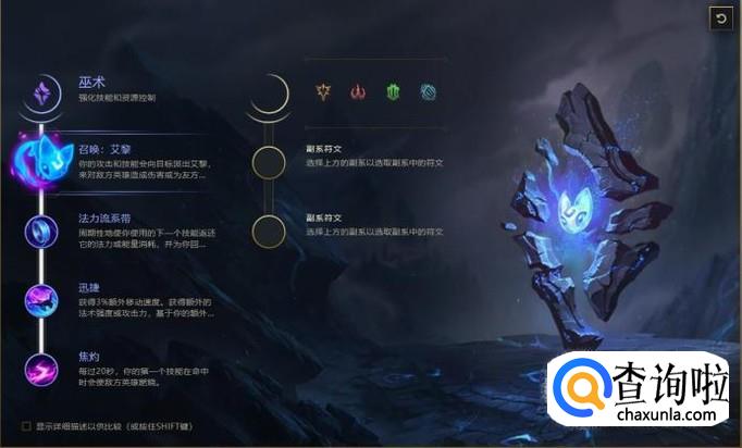首先中单岩雀的主系符文我们选择巫术,巫术可以强化技能和资源控制