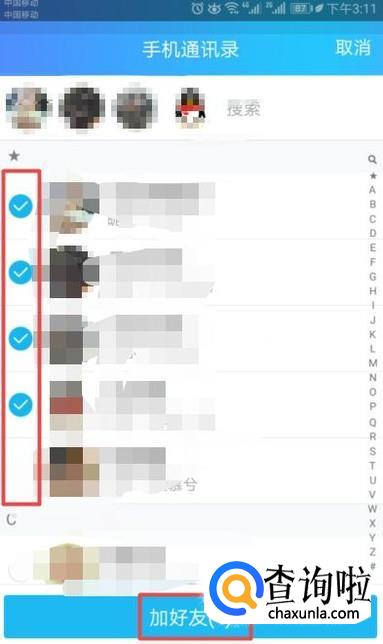 之后我们选中多个手机通讯录联系人,然后我们点击加好友就可以了。