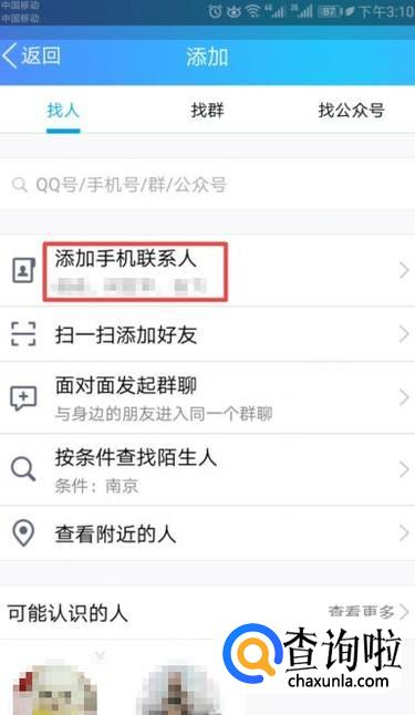 弹出的界面,我们点击添加手机联系人;