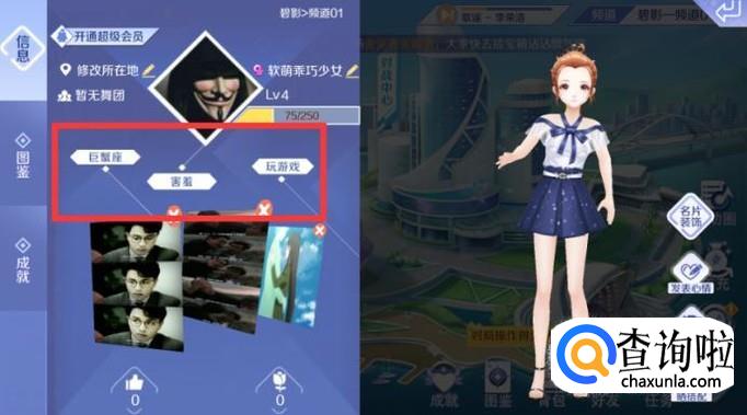 “性格”内选择符合自己的性格。