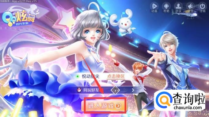 首先打开手机桌面的QQ炫舞手游,再选择自己的炫舞区,点击“进入游戏”这一项。