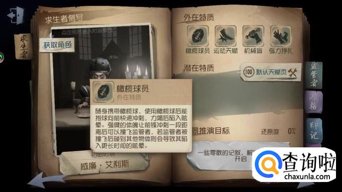 加速道具:橄榄球。这是前锋的随身道具。玩家可以使用橄榄球向前加速冲刺,以快速逃离监管者的追击。也可以在其他队友被绑上气球时撞击监管者使同伴掉落。但是一定要小心装上障碍物,不然只会使得自己更快被抓。