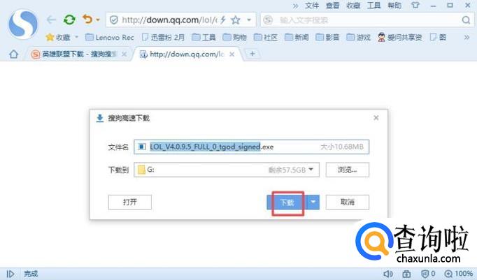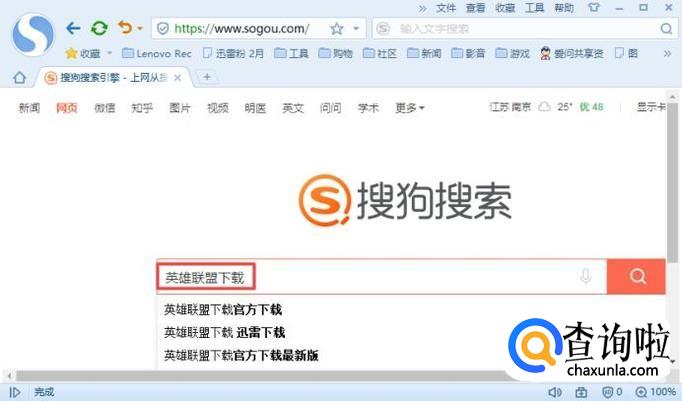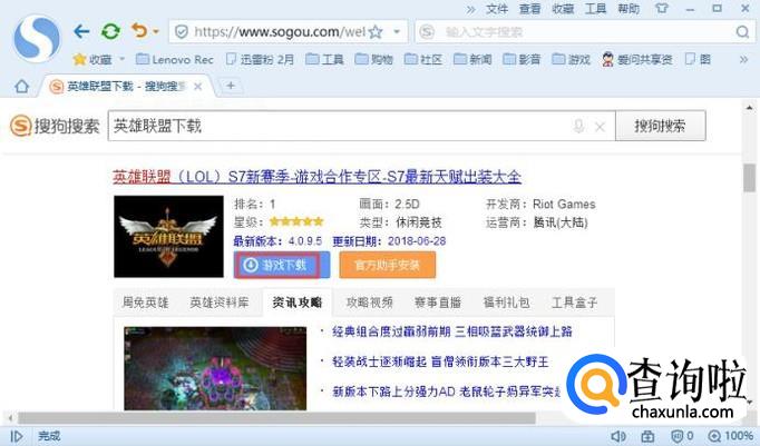 进入浏览器之后,我们在搜索引擎中输入英雄联盟下载,然后我们按回车键;
