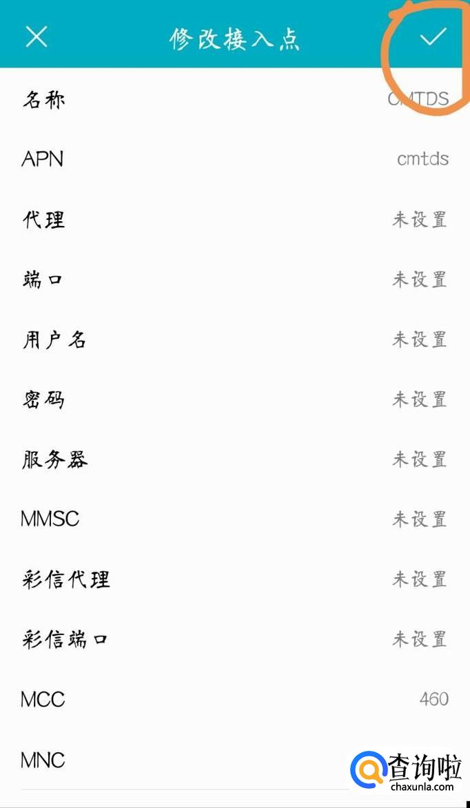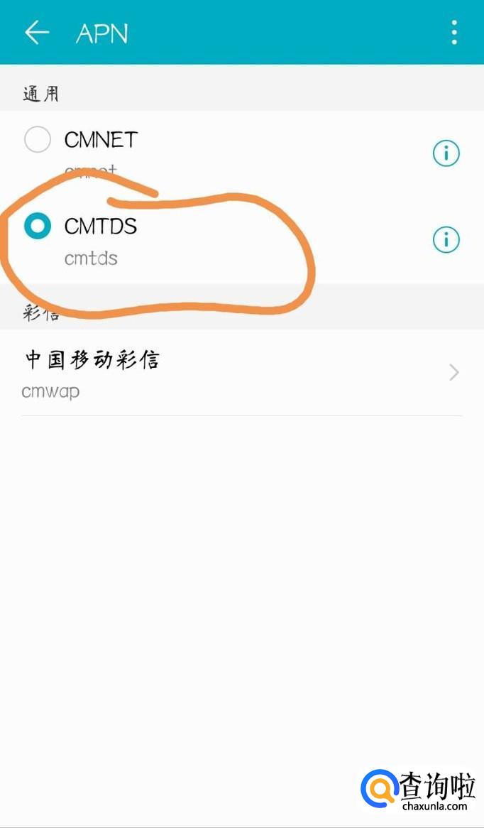 最后选择我们新建的APN“cmtds”,即可通过APN提高手机4G网速了