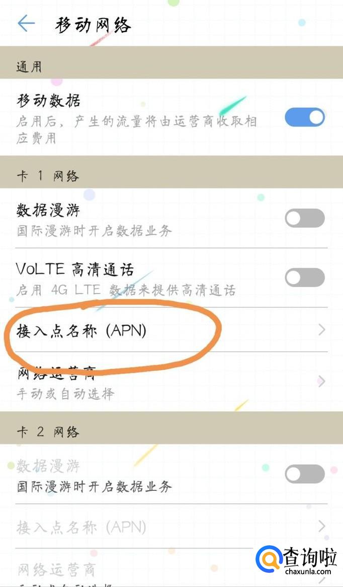 可以看到“输入点名称(APN)”选项,也就是APN功能,点击进入APN设置界面