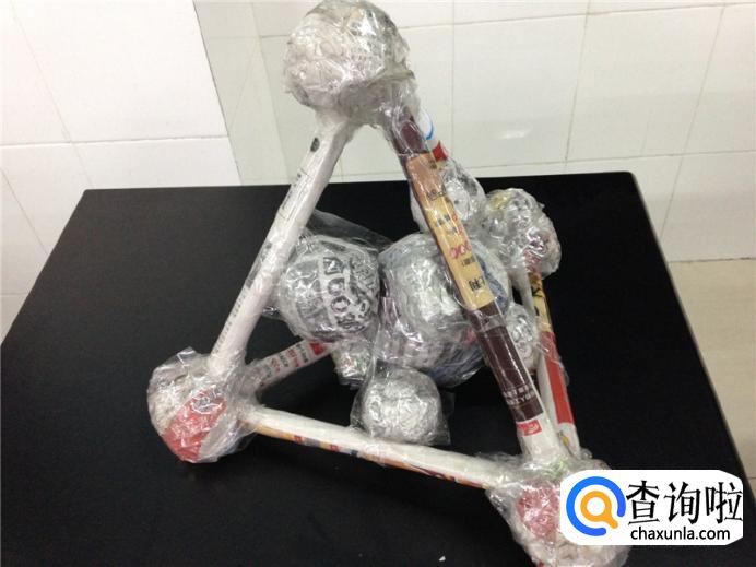 吸管组型,用几根吸管绑在一起做成吸管组,将几组吸管组搭成金字塔形,将鸡蛋夹在中间,用胶条固定。吸管由于是中空的,可以起到缓冲作用。