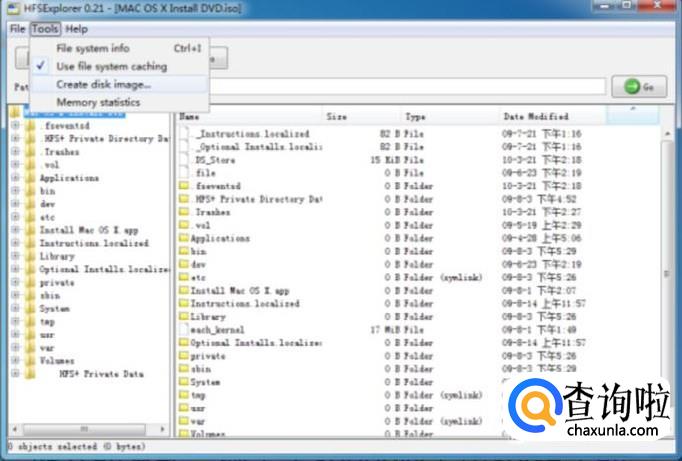 将文件载入HFS-Explorer浏览器中之后,点击"Tool"—>"Create disk image",选择保存位置。注意!保存位置不能放置于两个为Snow Leopard准备的分区内。可以放置在其他分区