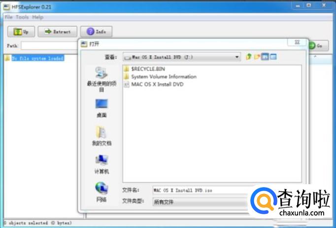 然后我们需要将阻碍在PC上引导的引导层部分剥离。然后将安装文件放进准备的文件分区内。生成不包含引导层的DMG文件,这里需要用到工具HFS-Explorer。安装并运行HFS-Explorer之后,首先点击"File"—>"Load file system from file",然后选择下载的镜像文件,笔者这里是Mac OS X install DVD.iso。如果这里的源镜像是.DMG的话,需要在弹出窗口中勾选含有HFS+那一项,然后点OK即可