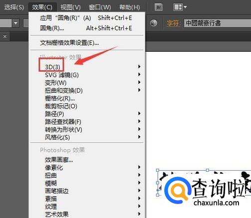 选择输入的文字,然后在效果里我们找到3D选项,如图所示: