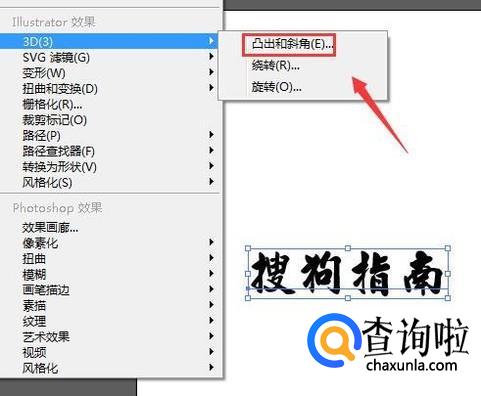 点击3D选项在其子级菜单哪里找到凸出和斜角选项,如图所示: