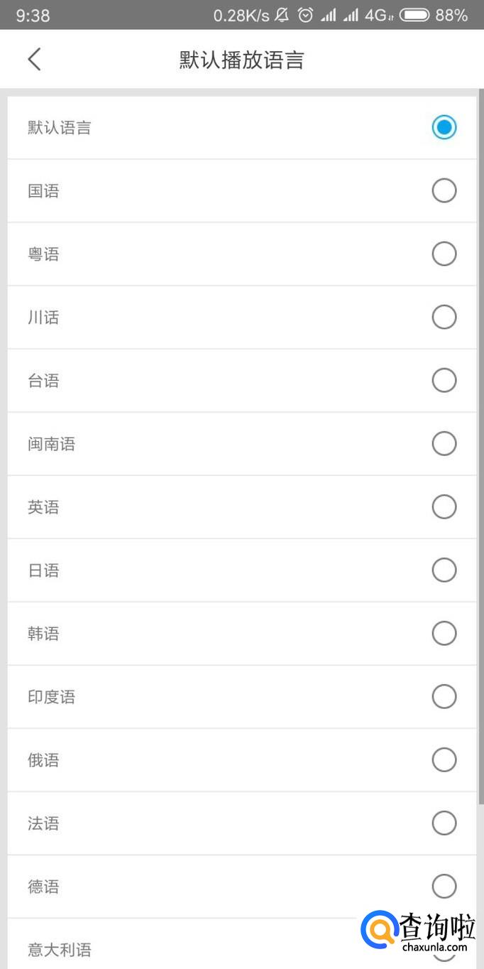 在列表中点击播放语音设置。