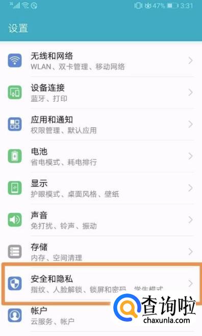 进入手机中【设置】,在设置中我们找到【安全与隐患】。