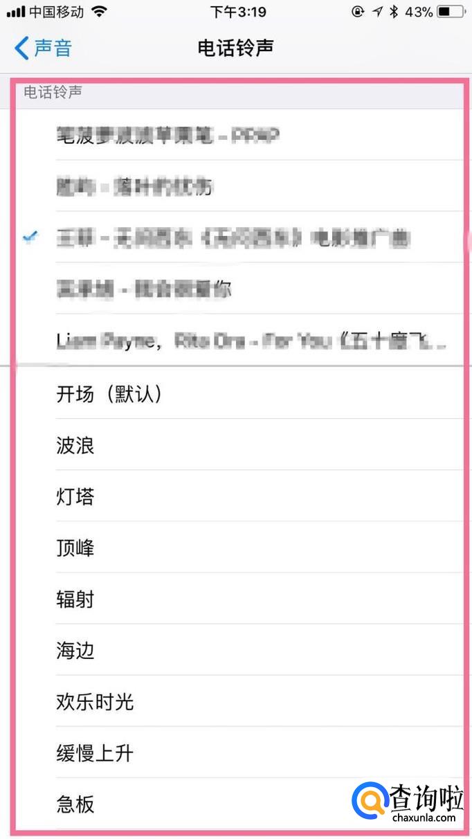 最后选择你想要的铃声并点击它就可以了。你学会了吗?赶快动手试一试吧!