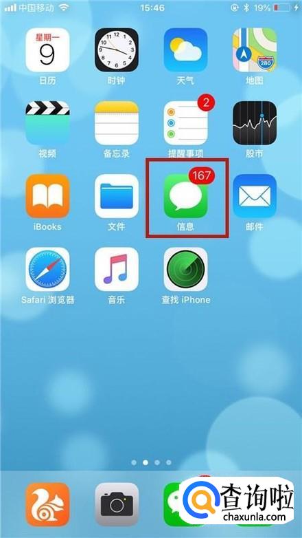 首先在我们的手机桌面上找到信息并点击它,如下图所示。