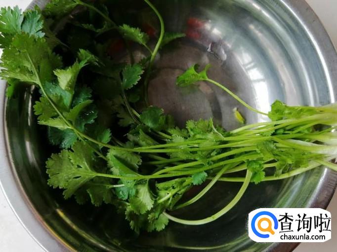 菜花适量,蒜适量,辣椒面适量,香菜少许,食盐,生抽、香醋适量。