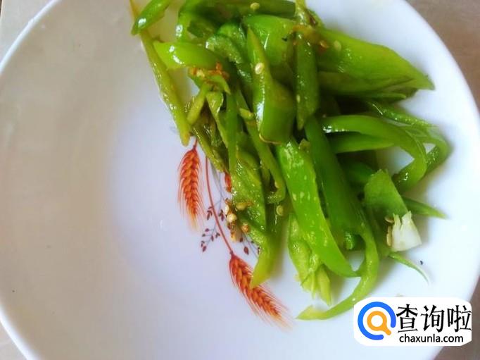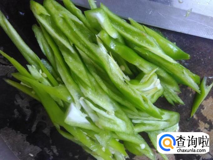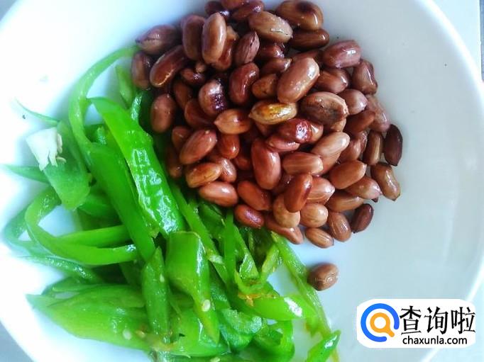 花生准备好,青椒切成丝。