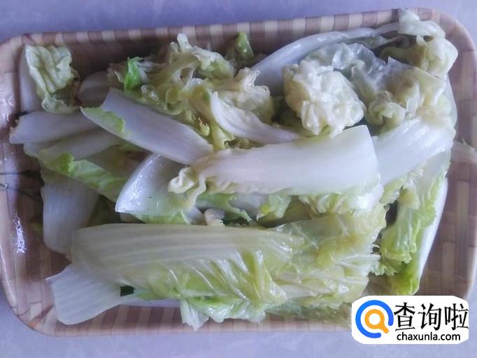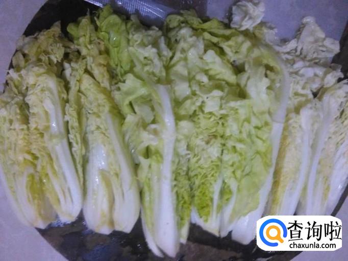 娃娃菜清洗干净,然后竖切成一条条。