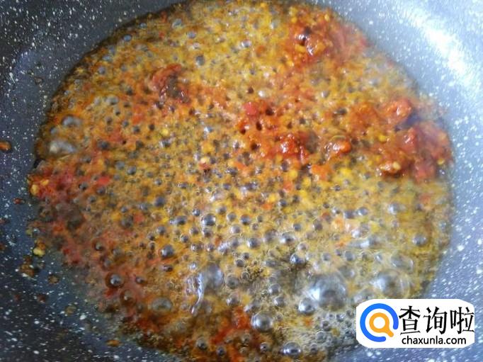 热锅起油,放酸梅紫苏辣椒酱进去炸香,然后灼到鱼面上。