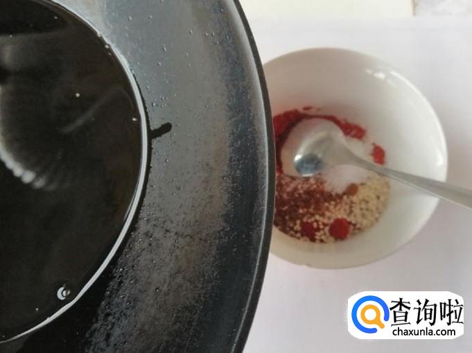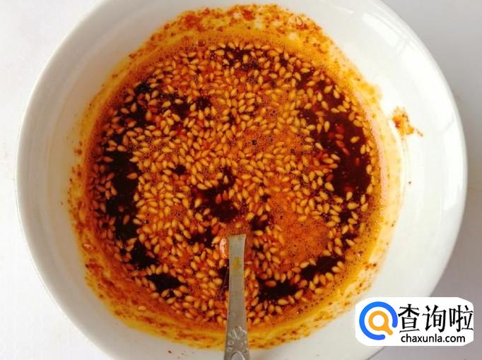 准备好一勺食盐备用,在辣椒油里放食盐,会多了香味少了辣味,加入适量食盐油泼后特别香。