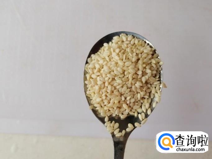 取适量新鲜的白芝麻待用,我这里选用一勺白芝麻,之前洗净晾干的芝麻,这里用它也可以提香味。