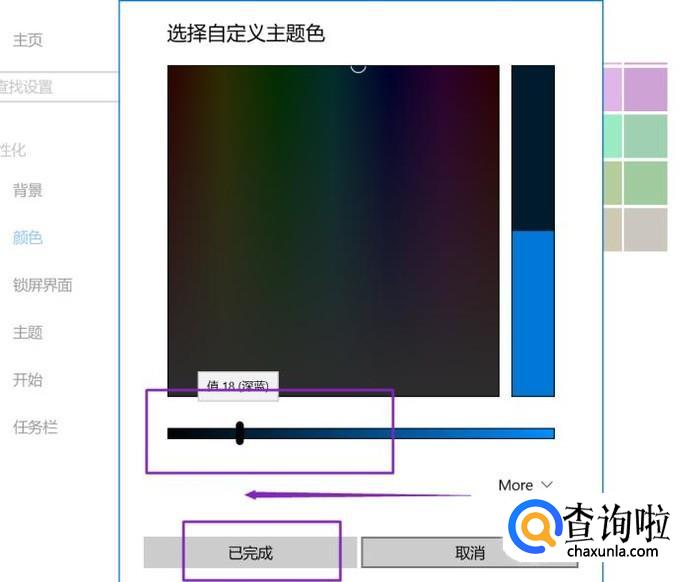 弹出的界面,我们将背景颜色调暗一些,然后点击完成即可。