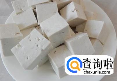 将豆腐切成小块状,注意不要太大,以免影响到调料的入味,之后在锅中倒入少量的油,开火烧热。