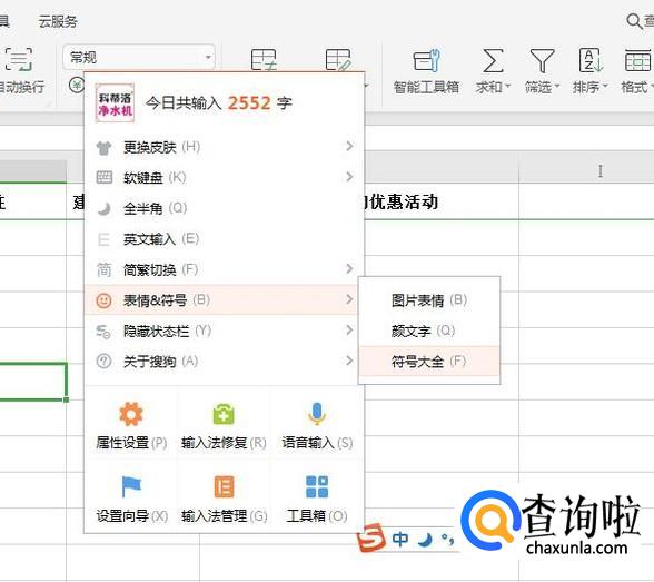 还有另外一种方法,就是通过从搜狗拼音输入法输入感叹号。首先鼠标右键点击搜狗输入法,选择“表情符号”-“符号大全”。