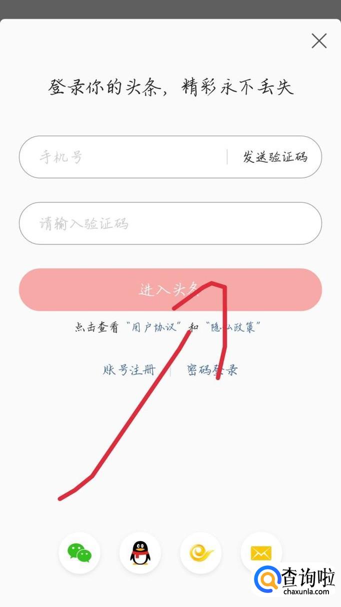 输入你的手机号和收到的验证码,点击“注册”选项,如图1箭头所示。然后你就注册完成,可以进入头条了。