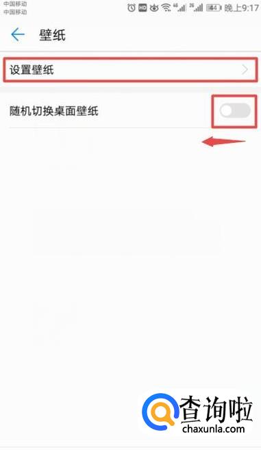 然后我们先将随机切换桌面壁纸的开关向左滑动关闭,这个是非常关键的一步,之后我们点击设置壁纸;