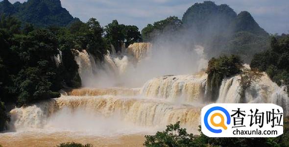 德天瀑布,与越南的板约瀑布连为一体。瀑布总宽208米,是东南亚最大的天然瀑布,也是世界第二大跨国瀑布。