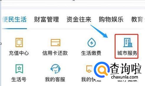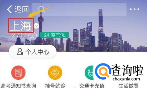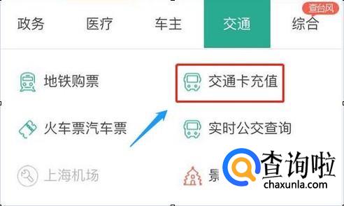 在更多的全部应用列表中找到"城市服务",然后系统会自动定位目前我们所在城市,我们先以魔都上海市为例,点击此页面下方的"交通",然后我们会看到"交通卡充值"服务选项;