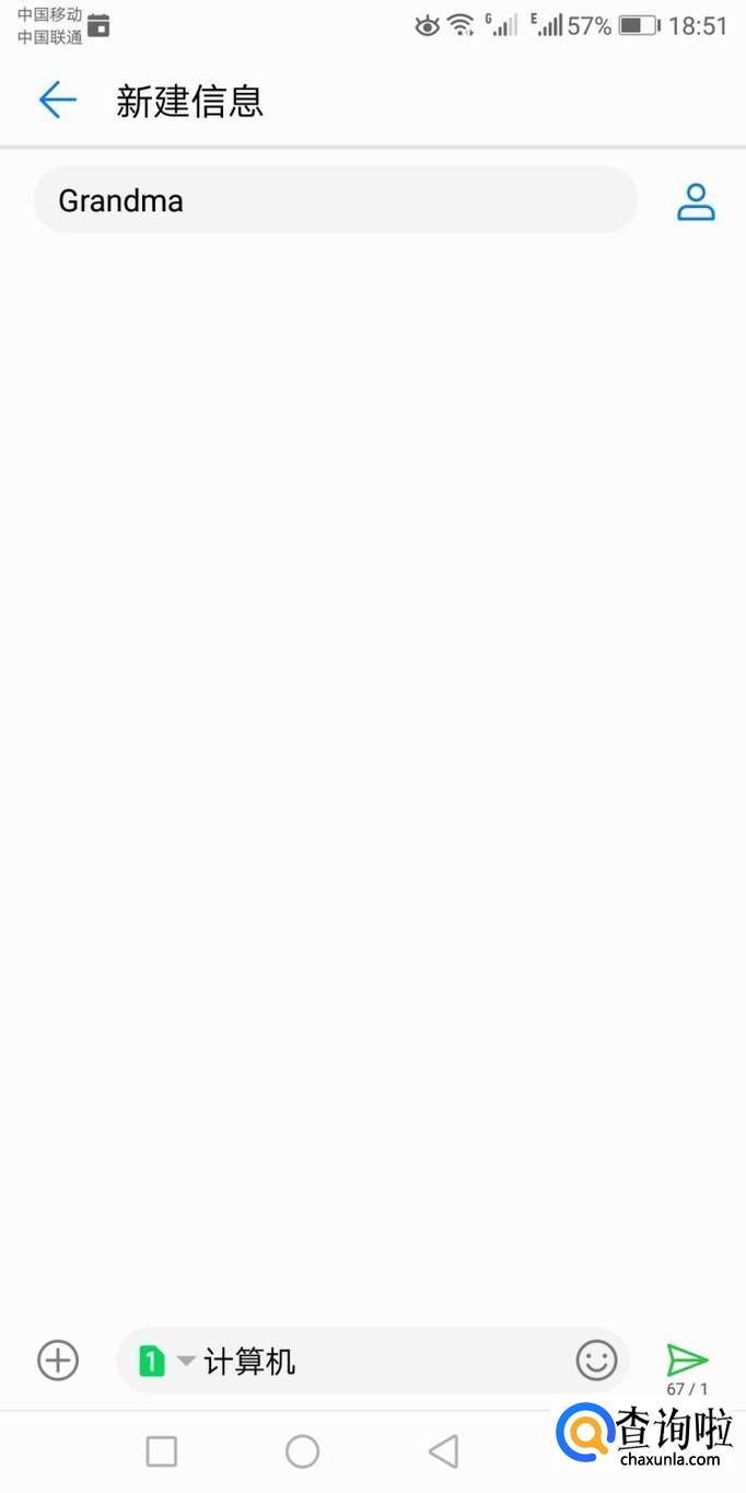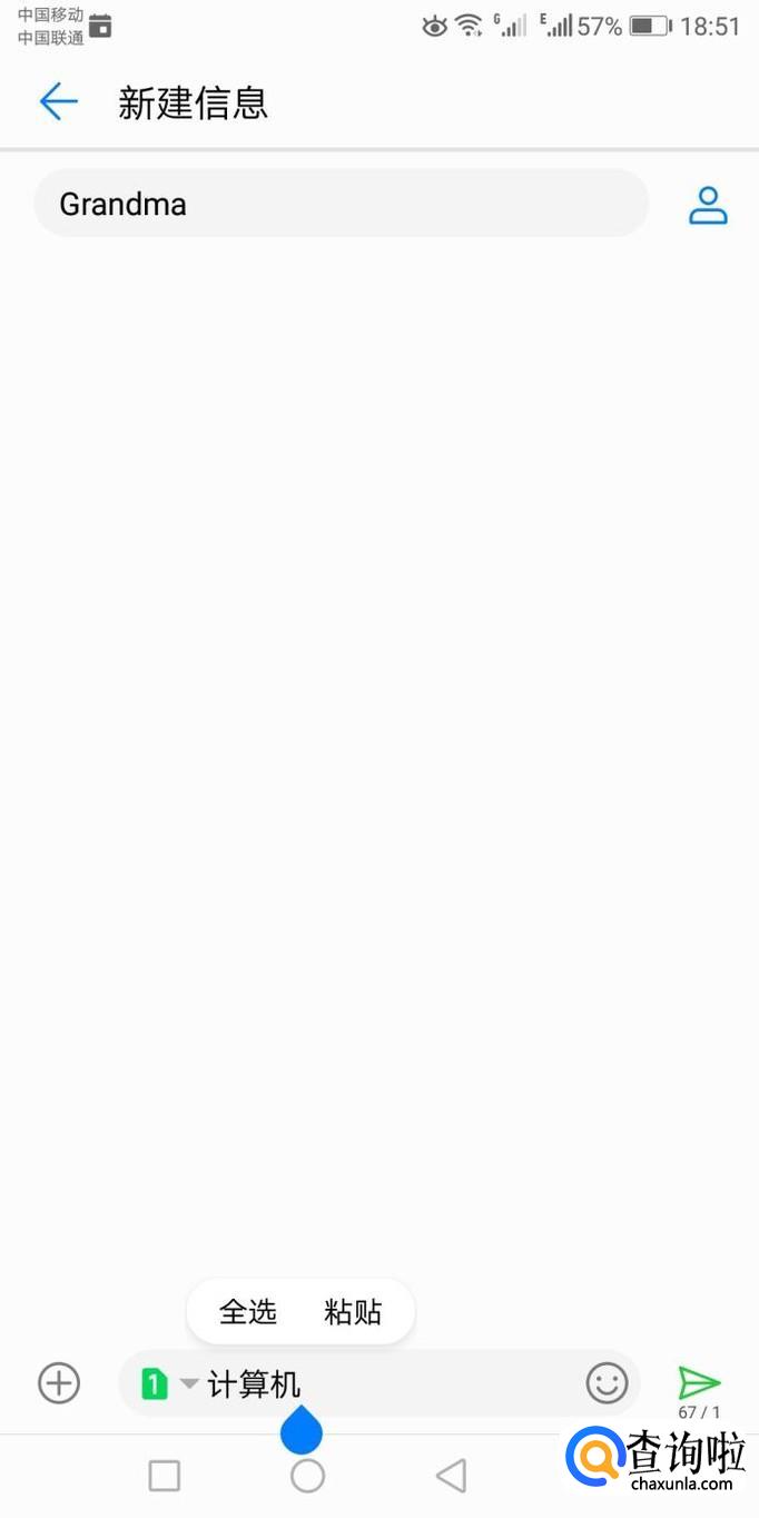 首先我们打开发送短信界面,以短信界面为例。输入一些文字,比如输入计算机