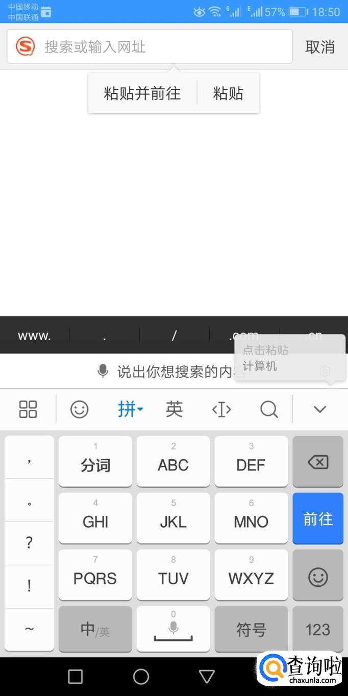 打开浏览器,以浏览器为例,长按空白处,出现粘贴按钮,点击即可。