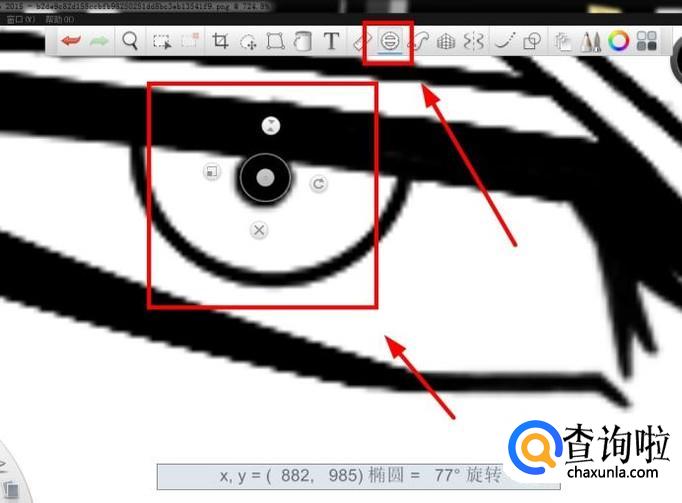如图所示在眼睛部分,使用“椭圆工具”绘制出人物的眼球和瞳孔