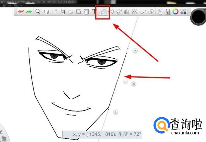 使用如图所示的“直线工具”,绘制出眼睛的间距
