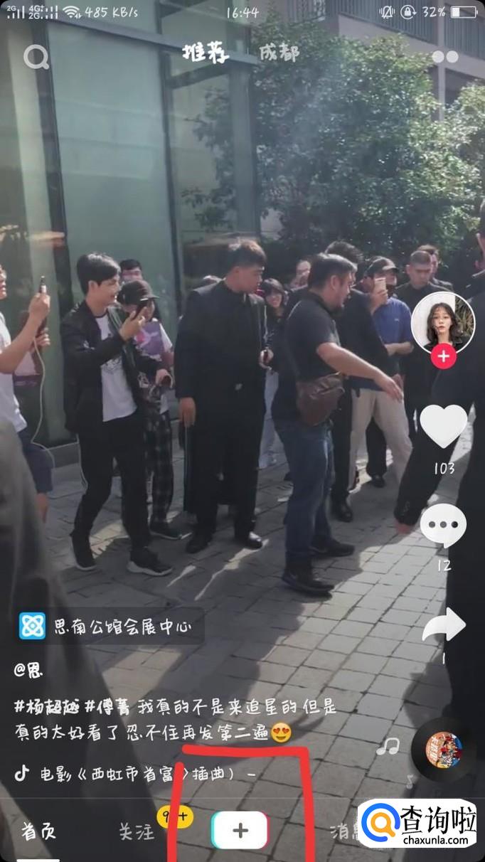 打开抖音,点击下方中间的加号,开始拍摄。