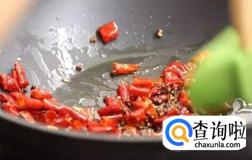 起锅烧油,把干红椒倒进去炸,有香味飘出的时候捞上来。